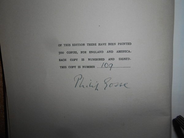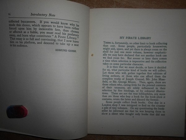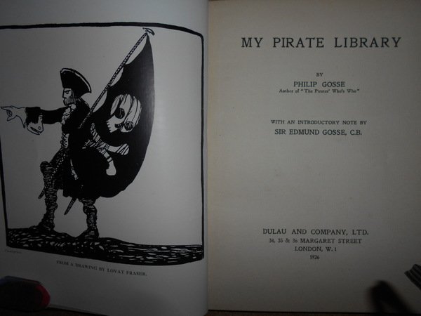 By PHILIP GOSSE. London, Dulau And Company, LTD, 1926. MY PIRATE LIBRARY By PHILIP GOSSE - Edizione originale. In-8° piccolo, tela coeva con titoli in oro al dorso. 75 pp., 1 tavola f.t. Edizione di 300 esemplari numerati e firmati dall' Autore (n° 109). In ottimo stato di conservazione. Neg. mob. rosso