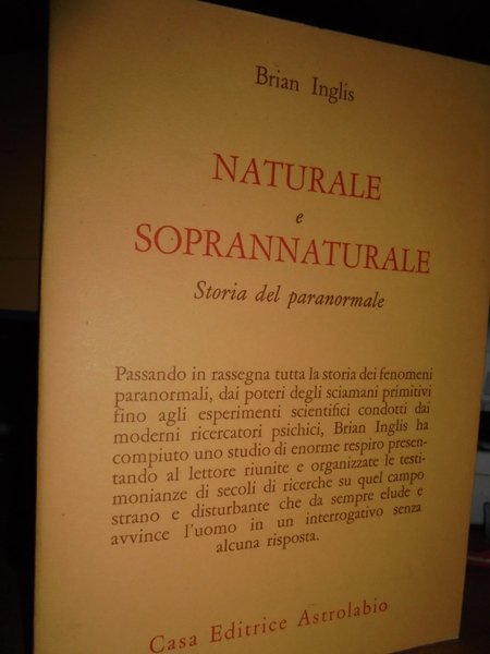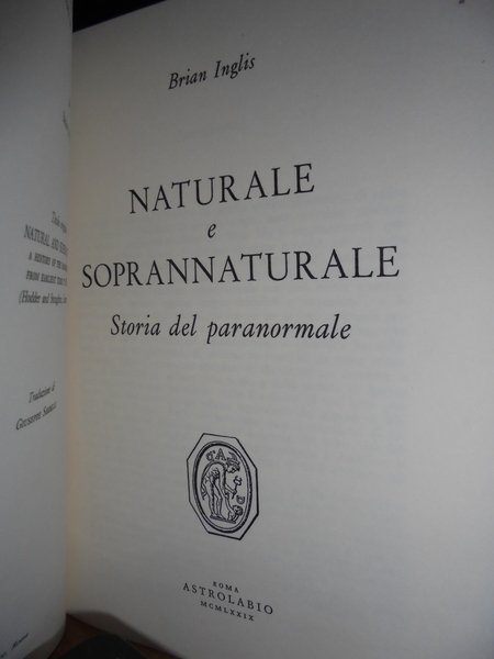 Brian, Inglis. Roma, Casa Editrice Astrolabio, 1979. Naturale e Soprannaturale. Storia del paranormale. In-8°, cart. edit. con sovracopertina. 500, (4) pp. Volume in ottimo stato di conservazione o come nuovo. Neg. esot. mob. 101
