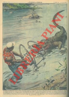 Negro riesce ad avere la meglio contro un coccodrillo che tenta di strappargli via la bicicletta.