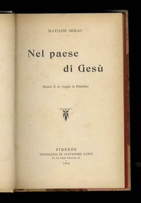 Firenze, Tipografia di Salvatore Landi, 1900, in-16, bella legatura coeva in mezza pergamena con punte, dorso liscio con titolo e una ricca decorazione fitomorfa in oro, piatti in carta marmorizzata, sguardie in carta decorata, tagli rossi, pp. 366, [2]. Prima edizione. Bell'esemplare.