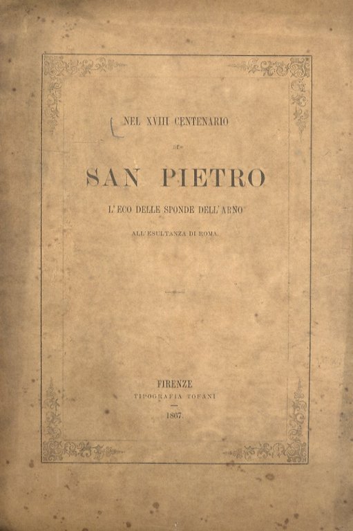 Nel XVIII centenario di San Pietro. L'eco delle sponde dell'Arno all'esultanza di Roma.