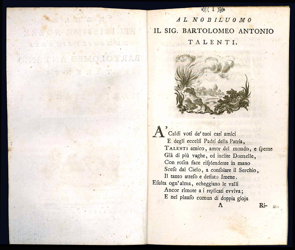 Nelle felicissime nozze de' nobili signori Bartolomeo Antonio Talenti e Maria Isabella Provensali.