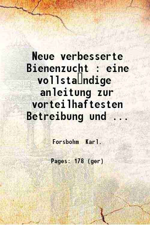 Neue verbesserte Bienenzucht : eine vollsta?ndige anleitung zur vorteilhaftesten Betreibung und Ausnutzung der Bienenzucht nach den Grundsa?tzen des dr. Dzierson / von Karl Forsbohm. 1906