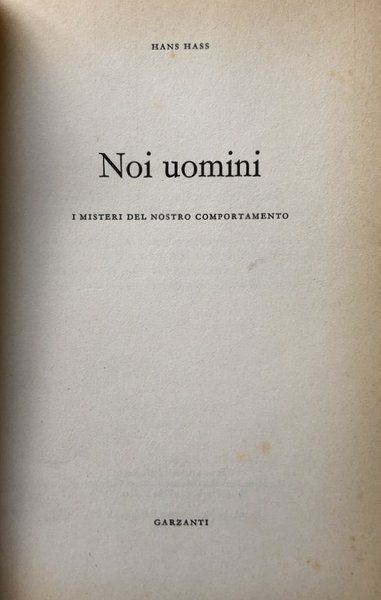 Soggetti: Psicologia, Etologia contemporanea, Libri vintage, fuori catalogo, Scienza e ricerca, Konrad Lorenz, Eibl-Eibenfeld, Tinbergen, Holst, Darwin, Darwinismo, Scoperte, Comportamento umano, Relazioni, Emozioni, Sentimenti, Reazioni, Mimica, Istinto, Animali, Regno Animale, Mammiferi, Gruppi, Selezione naturale, Evoluzione, Teorie evolutive, Psicofisica, Fauna marina, Analogie, Scimmie, Biologia, Vita, DNA, Genetica, Ereditarietà, Solidarietà, Variazione di funzione, Vitalismo, Sensazione etica, Tradizione, Selettività, Origine, Ritualizzazione, Stati d'animo, Riproduzione, Cellule, Saluto, Territorio, Potere, Innatismo, Movimenti, Anima, Amicizia, Curiosità, Cervello, Comunità, Fantasia, Libertà, Metazoi, Ordinamento, Organi, Memoria, Sessualità, Ermafroditismo, Eccitazione, Aggressività, Fuga, Paura, Narcisismo, Omosessualità, Conflitti sociali, Società, Arte, Manualità, Creatività, Gestualità, Collera, Bacio, Frustrazione, Lavoro, Divisione, Linguaggio, Gioco, Gelosia, Legami, Difesa, Ricetta direttiva, Riflessi, Musica, Gerarchie, Bibliografia, The Human Animal Animal: The Mystery of Man's Behavior, Zoologia, Xarifa, Subacquea, Psychology, Contemporary Ethology, Books out of print, Science and research, Discoveries, Human behavior, Relations, Emotions, Feelings, Reactions, Mimic, Instinct, Animals, Animal kingdom, Mammals, Groups, Natural selection, Evolution, Evolutionary theories, Psychophysics, Marine, Analogies, Monkeys, Biology, Life, Genetics, Inheritance, Solidarity, Variation of function, Vitalism, Ethical sensation, Tradition, Selectivity, Origin, Ritualization, Moods, Reproduction, Cells, Greeting, Territory, Power, Innatism, Movements, Soul, Friendship, Curiosity, Brain, Community, Fantasy, Freedom, Metazoa, Ordering, Organs, Memory, Sexuality, Hermaphroditism, Excitement, Aggression, Escape, Fear, Narcissism, Homosexuality, Social Conflicts, Society, Manuality, Creativity, Gesture, Anger, Kiss, Frustration, Work division, Language, Play, Jealousy, Bonds, Defense, Directive recipe, Reflexes, Music, Hierarchies, Bibliography, Zoology