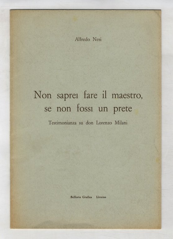 Non saprei fare il maestro, se non fossi un prete. Testimonianza su don Lorenzo Milani.