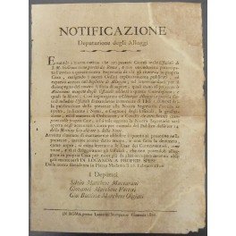 Notificazione. Deputazione degli alloggi. Denuncia degli alloggi ancora occupati dagli ufficiali della Repubblica Romana