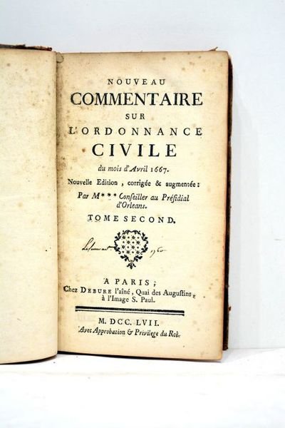 NOUVEAU commentaire sur l'ordonnance civile du mois d'avril 1667. Nouvelle édition, corrigée et augmentée; par le conseiller au présidial d'Orléans. Tome second.