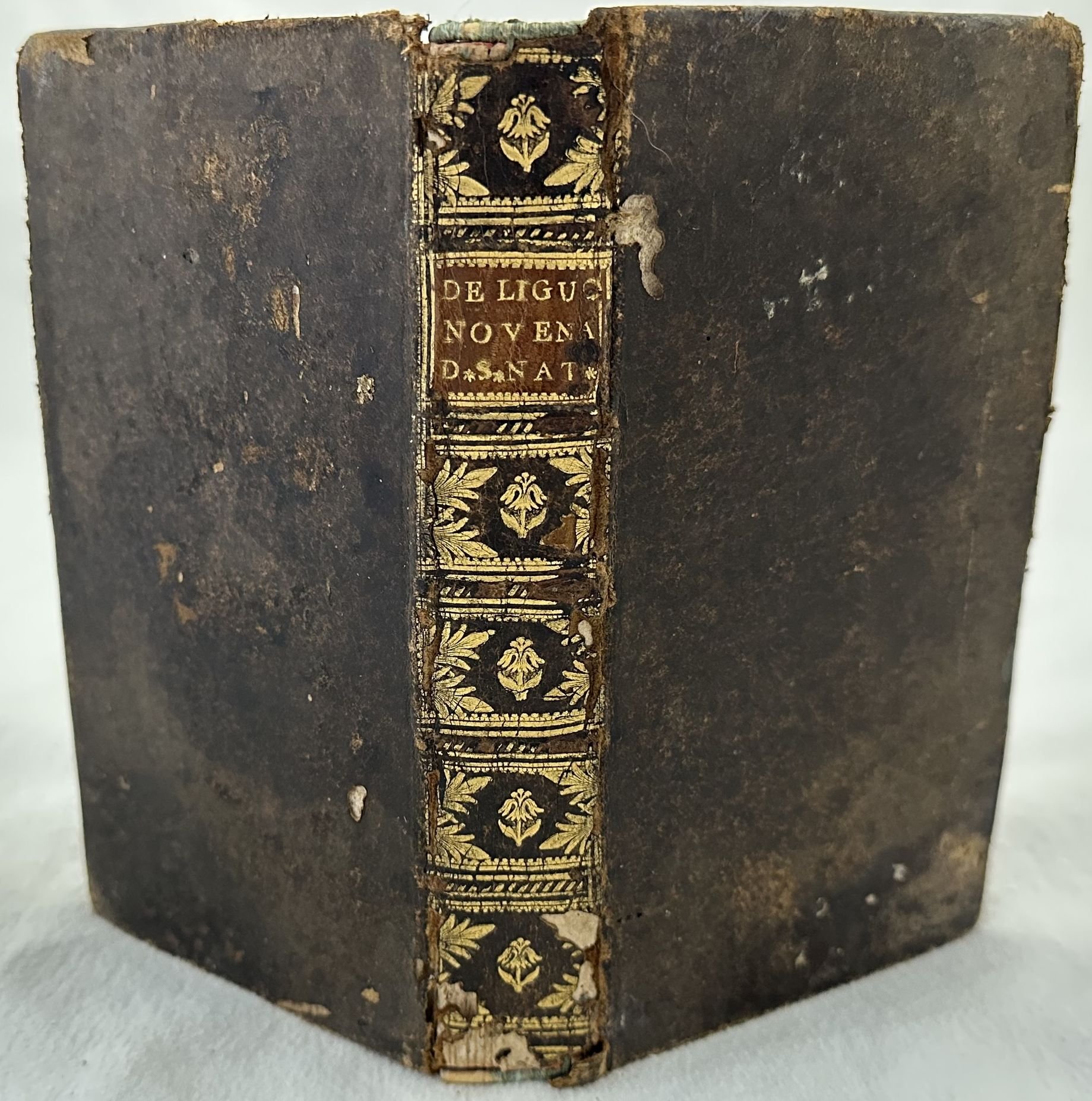 Edizione Remondini del 1760 di questa celebre opera di Alfonso de Liguori (1696-1787) sulla novena e meditazioni per il Natale. De Liguori ha avuto un ruolo chiave nel dibattito del periodo tra il Giansenismo ed il significato preciso della legge, dimostrandosi come il pi? famoso ed influente.I suoi manuali sono quelli che hanno saputo dare più risposte ai dubbi che pervadevano la cristianità, e sono stati delle pietre miliari per i successivi del XIX secolo. All'interno: novena al Ss. Cuore di Gesu, Settenario in onore di San Giuseppe, Apparecchio e ringraziamento alla Messa per i Sacerdoti. Bella incisione in antiporta della natività e una tavola fuori testo. Firma al frontespizio. In buone condizioni e completo Copertina in piena pelle coeva con titolo e decorazioni in oro al dorso in buone condizioni generali con lievi usure ai margini e dorso. Piccoli segni di tarlo in copertina. Legatura in buone condizioni. All'interno le pagine si presentano in buone condizioni con rare fioriture. In 16. cm 17x10. Pp 408.Remondini edition of 1760 of this famous work by Alfonso de Liguori (1696-1787) about novena and meditations for Christmas. Inside: novena to Ss. Cuore di Gesu, Settenario in onore di San Giuseppe, Apparecchio e ringraziamento alla Messa per i Sacerdoti. Beautiful engraving in the frontspice about nativity and an out of text plate. Signature in the title page. In good conditions and complete. Leather coeval cover with gilted title and decorations in the spine in good conditions lightly worn in the extremities. Binding in good condition. Pages in good conditions with occasional foxing. In 16. cm 17x10. Pp 408.<BR><BR>