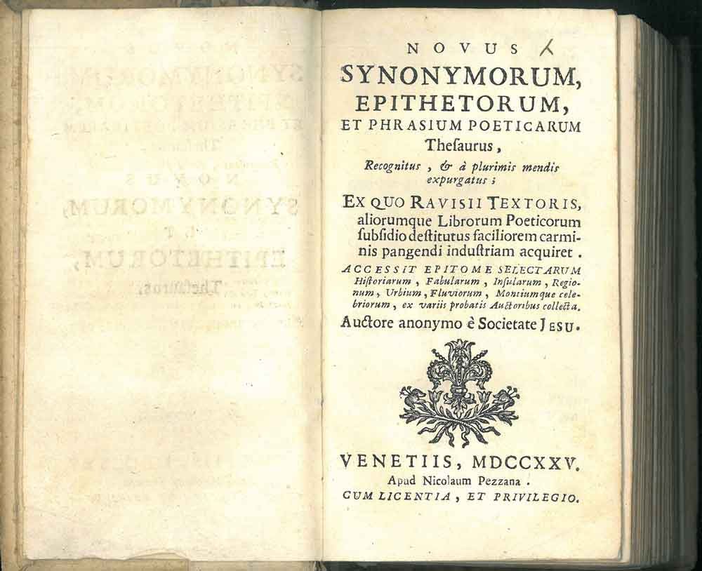 Novus synonymorum, epithetorum, et phrasium poeticarum Thesaurus, recognitus, & à plurimis mendis expurgatus; ex quo Ravisii Textoris, aliorumque librorum poeticorum subsidio destitutus faciliorem carminis pangendi industriam acquiret. Accessit epitome s