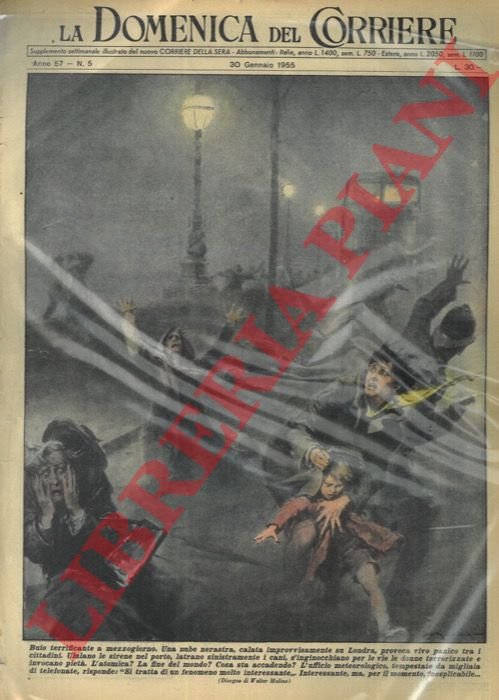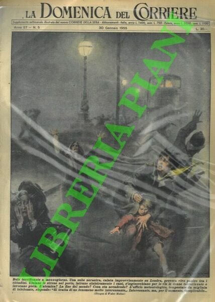 Milano, 30/01/1955, la sola copertina illustrata a colori, senza il fascicolo, della Domenica del Corriere.