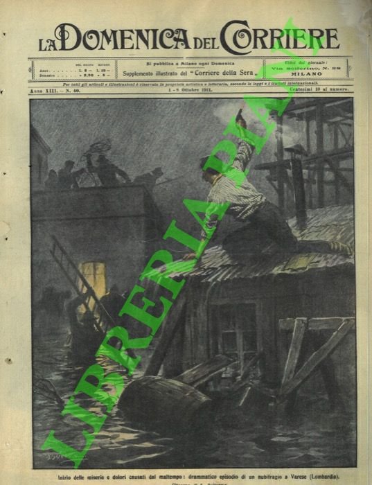 Milano, 1/10/1911, la sola copertina illustrata a colori, senza il fascicolo, della Domenica del Corriere.