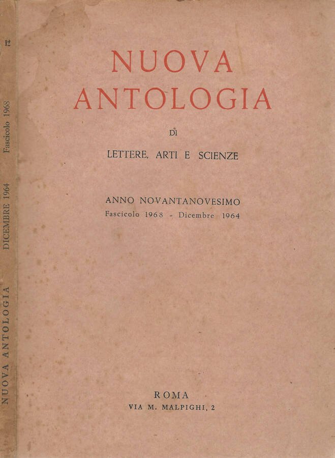 Nuova antologia anno 99° del1964 sono presenti i numeri 1964. con copertina in cartoncino flessibile nel complesso buono lo stato di conservazione piccoli e normali segni del tempo come ingiallimento delle pagine e fioritura.