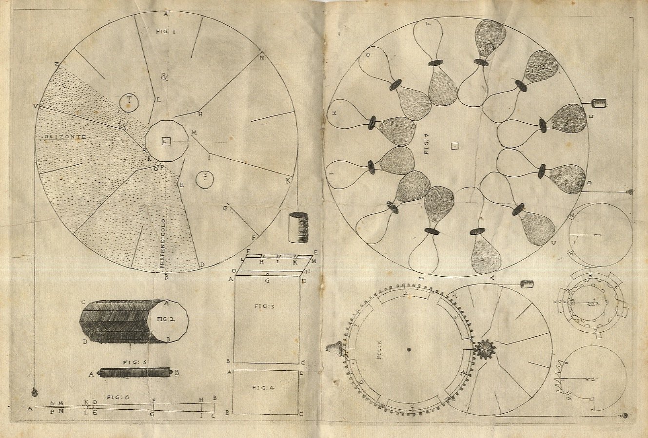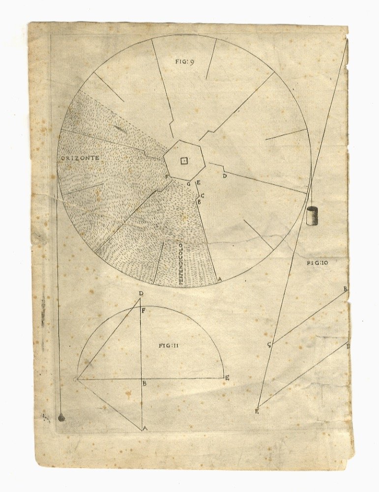 Solo le 3 tavole incise in rame a corredo dell'edizione "rara ed apparentemente unica", stampata a Roma da P. Bernardon all'Insegna della Virtù nel 1665. Alcuni strappi, perfettamente restaurati al verso delle tavole. Padre Radi fu "Professore di Matematiche e Teologo presso l'Ecc.mo Card. Facchinetti". (Riccardi, II, 332).