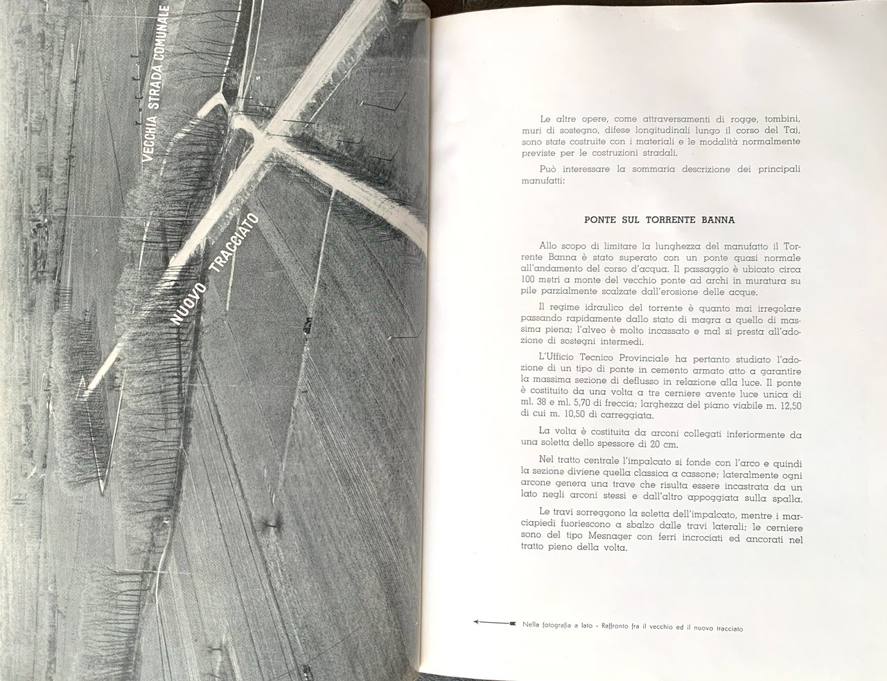 I ed.. IV/ 836) anche ripiegate (tavole)/ brossura in cartoncino martellato grigio con titoli in nero. Con tabelle in nero; due carte, di cui una ripiegata, in b/n con tracciati a colori; 4 sezioni in nero in tavole ripiegate (allegati); riproduzioni fotografiche in b/n e due fotografie aeree stampate in carta fotografica lucida. Stato buono (usura del dorso della copertina che si presenta nel terzo inferiore danneggiato - pagine lievemente ingiallite). Indice: presentazione; Giuseppe Grosso-Presidente della Provincia di Torino (Torino, 16 oottobre 1955) - Nuova Strada Provinciale Moncalieri-Villastellone; Ing. Felice Bardelli (Assessore alla viabilità)-Vittorio Tarizzo (Ing. Capo Ufficio Tecnico Prov.); (Tracciato - Profilo longitudinale - Opere d'arte principali - Ponte sul Torrente Banna - Cavalcavia sulla ferrovia Torino-Genova - Caratteristiche della strada - Materiali impiegati e costo dell'opera) - 4 Allegati: alcuni particolari costruttivi (Ponte sul Torrente Banna - Cavalcaferroovia sulla Torino-Genova).