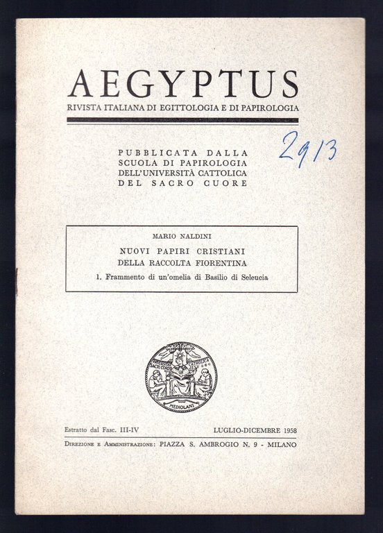 Nuovi papiri cristiani della raccolta fiorentina. Frammento di un'omelia di Basilio di Seleucia