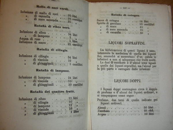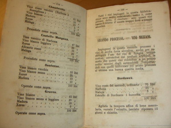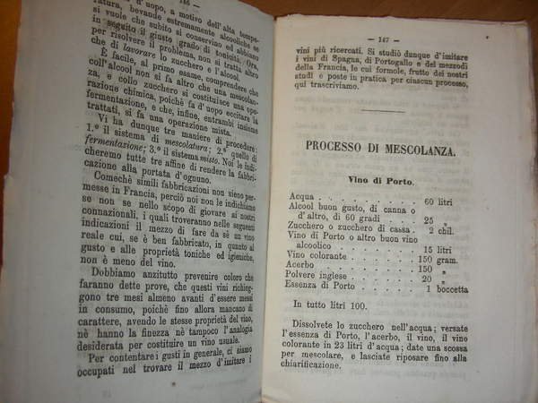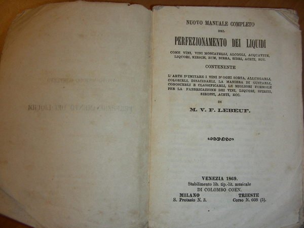NUOVO MANUALE completo del perfezionamento dei liquidi come vini, vini moscatelli, alcooli, acquavite, liquori, kirsch, rhum, birra, sidri, aceti, ecc. Contenente l’arte di imitare i vini d’ogni sorta, allungarli, colorirli, disacidarli, la maniera di gustarli.