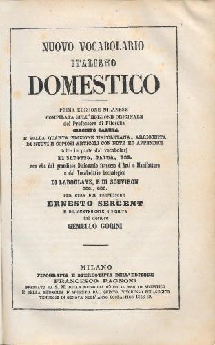 Nuovo vocabolario italiano domestico - unito - Nuovo vocabolario italiano d'arti e mestieri