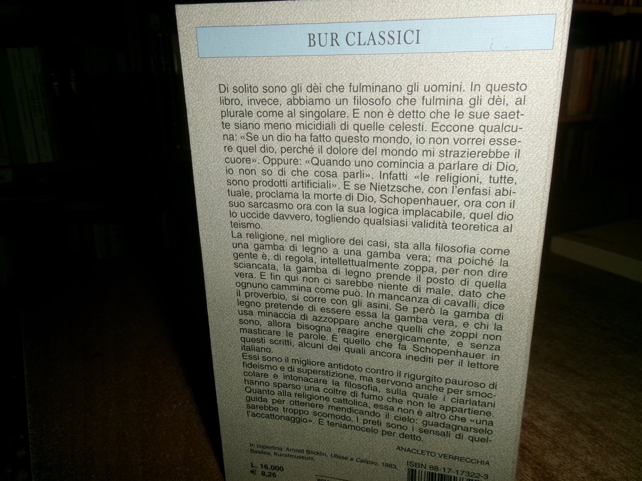 ARTHUR SCHOPENHAUER. Milano, RCS BUR, 2000. O si pensa o si crede. Scritti sulla religione. In-16°, br. ill. a col. 227 pp. Come nuovo. Neg. esot. mob. 70