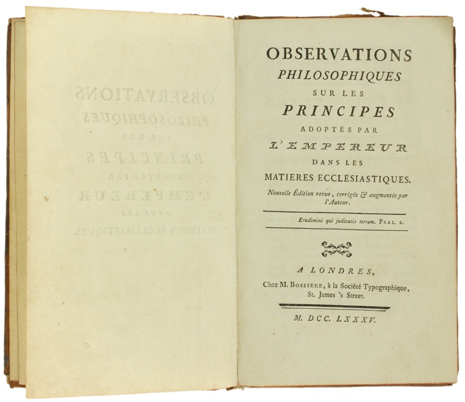 OBSERVATIONS PHILOSOPHIQUES SUR LES PRINCIPES ADOPTES PAR L'EMPEREUR DANS LES MATIERES ECCLESIASTIQUES. Nouvelle Édition revue, corrigée & augmentée par l'Auteur. | Libri antichi e moderni |