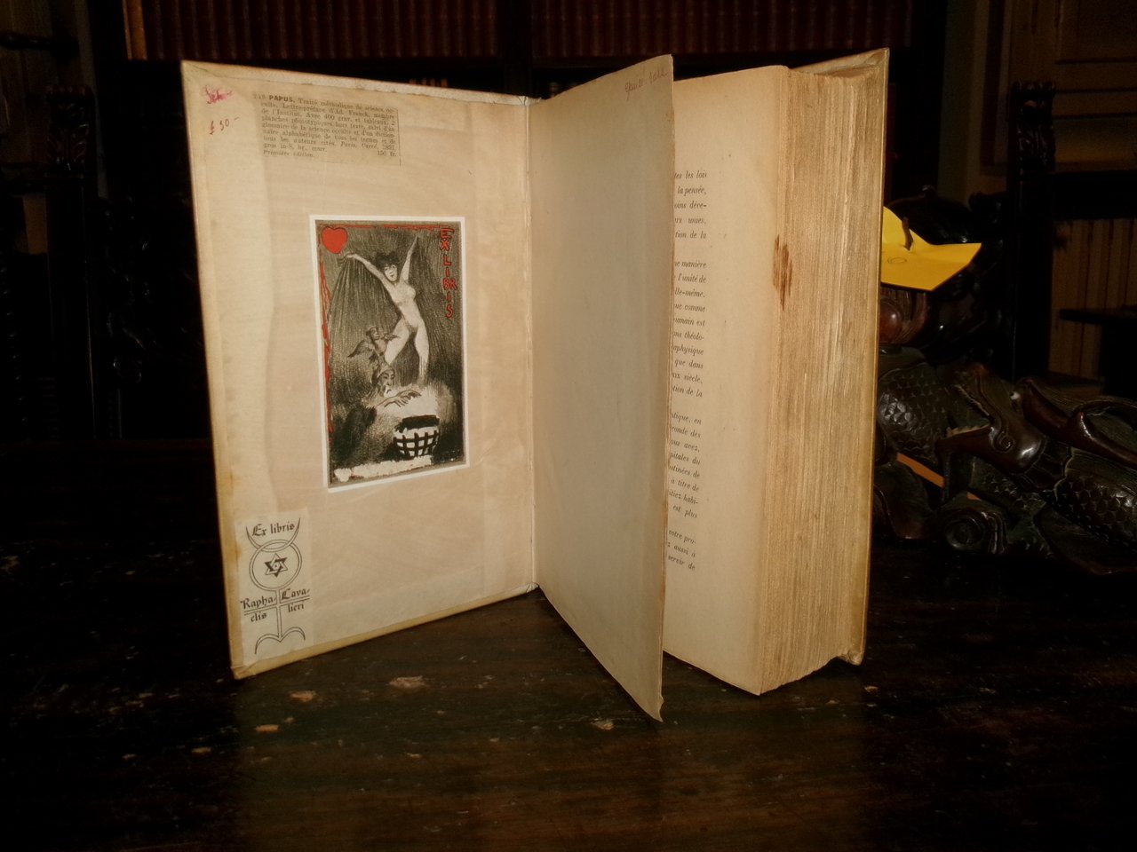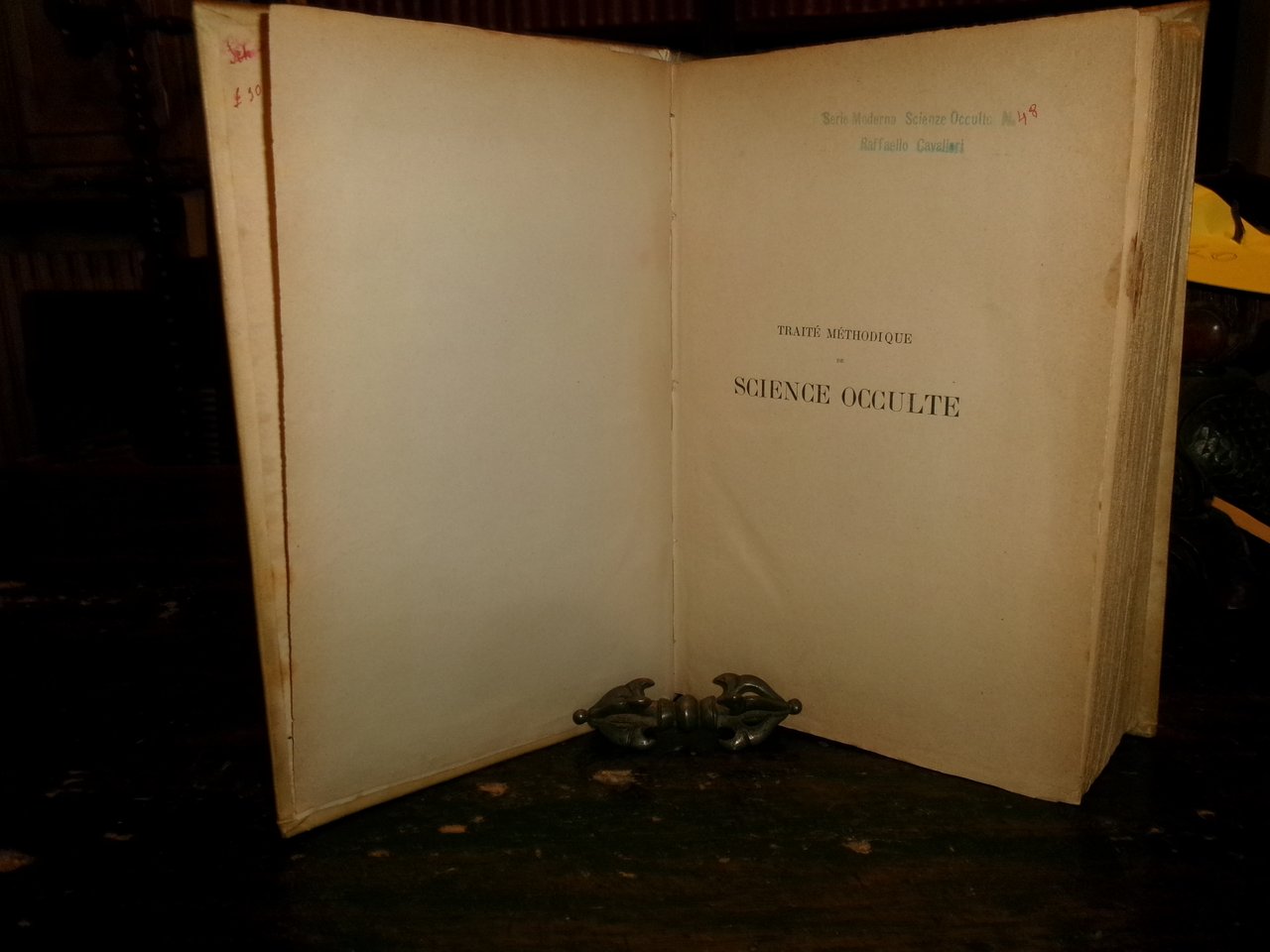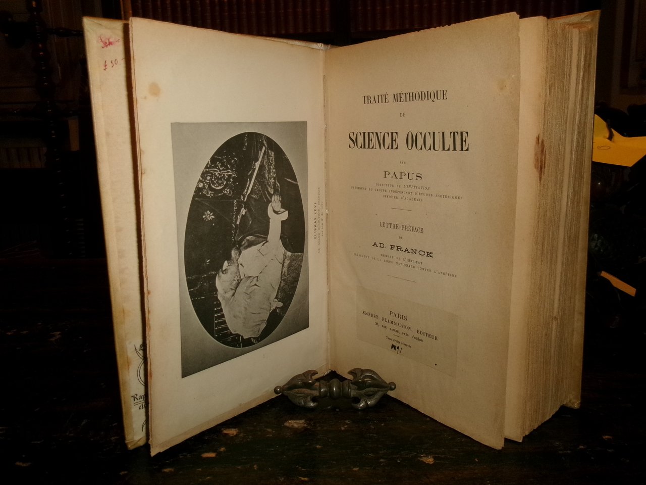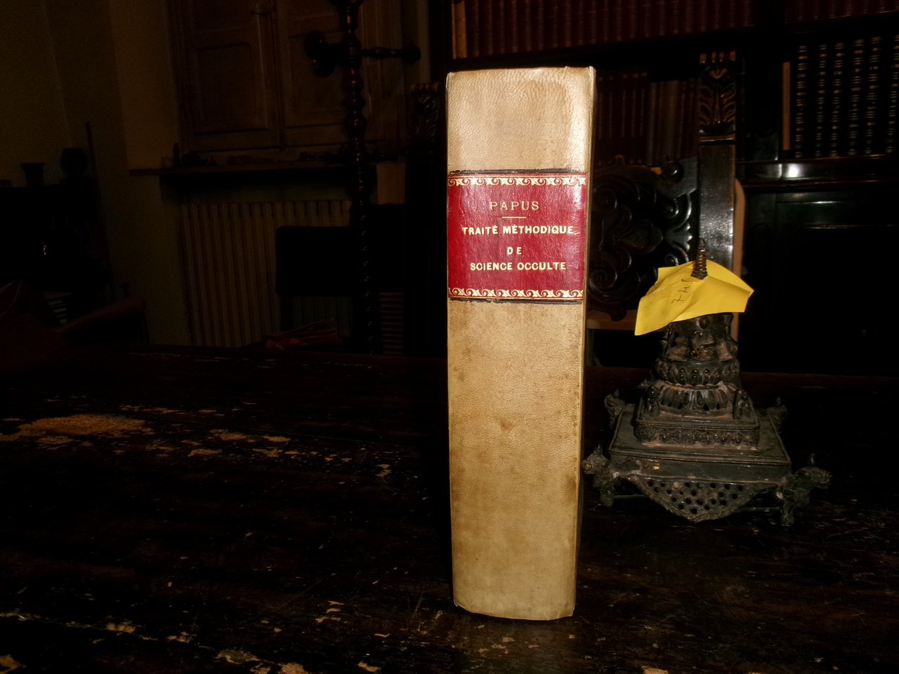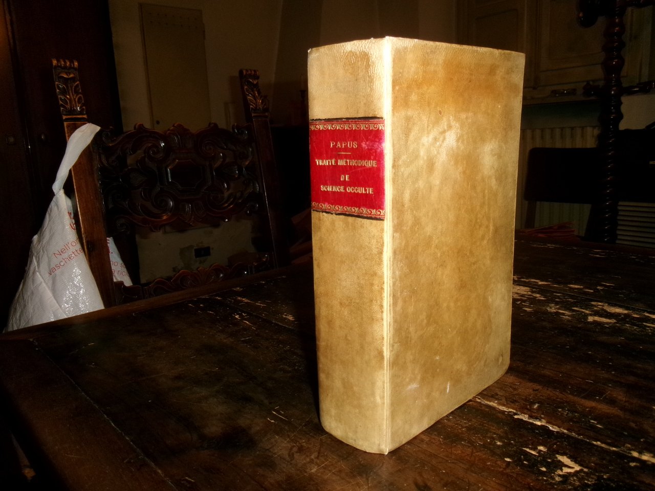 (Occultismo) PAPUS (Gérard Encausse). Traité méthodique de science occulte par Papus... Lettre-préface de Ad. Franck. Paris, Ernest Flammarion Editeur, 1891. In-8° grande, pergamena coeva. xxxvi, 1092 pp. con oltre 400 illustrazioni n.t. e 4 tavole f.t. Rara edizione originale. Ex libris... Caillet, 3612: << Des plus rares et recherché...>> Magnifique monument de l' Occultisme contemporain... C' est une véritable encyclopédie de tout ce qui touche aux Sciences magiques. Kabbale, Théosophie, Spiritisme, Alchimie, Franc-Maçonnerie, Arts Divinatoires: tout in un mot s'y trouve. C'est la base de toute Bibliothèque Magique moderne... Dorbon, 3516: <<... Tirage original devenu très-rare... Ouvrage capital... >>. Uff. scat. 9. (Tob.). Vendibile solo in Italia