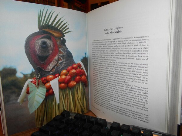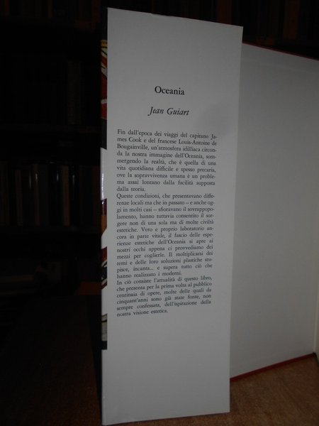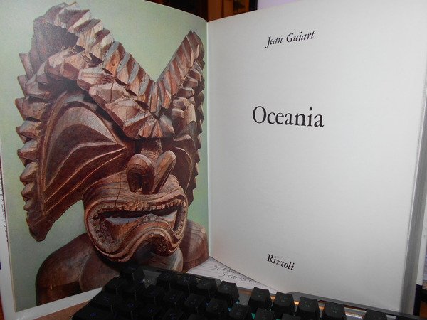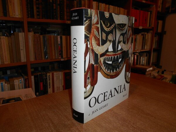 di JEAN GUIART. Milano, Rizzoli Editore, 1963. OCEANIA. In-4°, tela edit. arancione con titoli bianchi, sovracopertina ill. a col. 469 pp. con innumerevoli illustrazioni fotografiche a colori e in bianco e nero anche in tavole ripiegate. Come nuovo. Uff. stanzetta mob. a sinistra