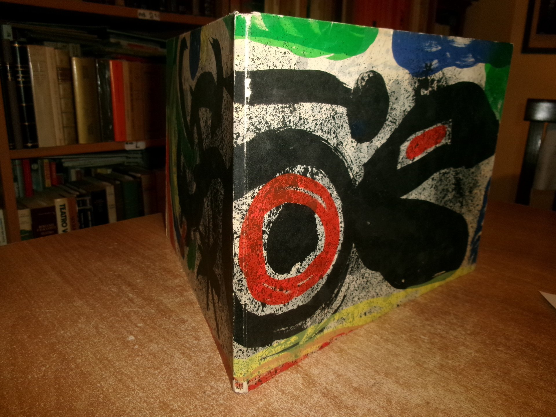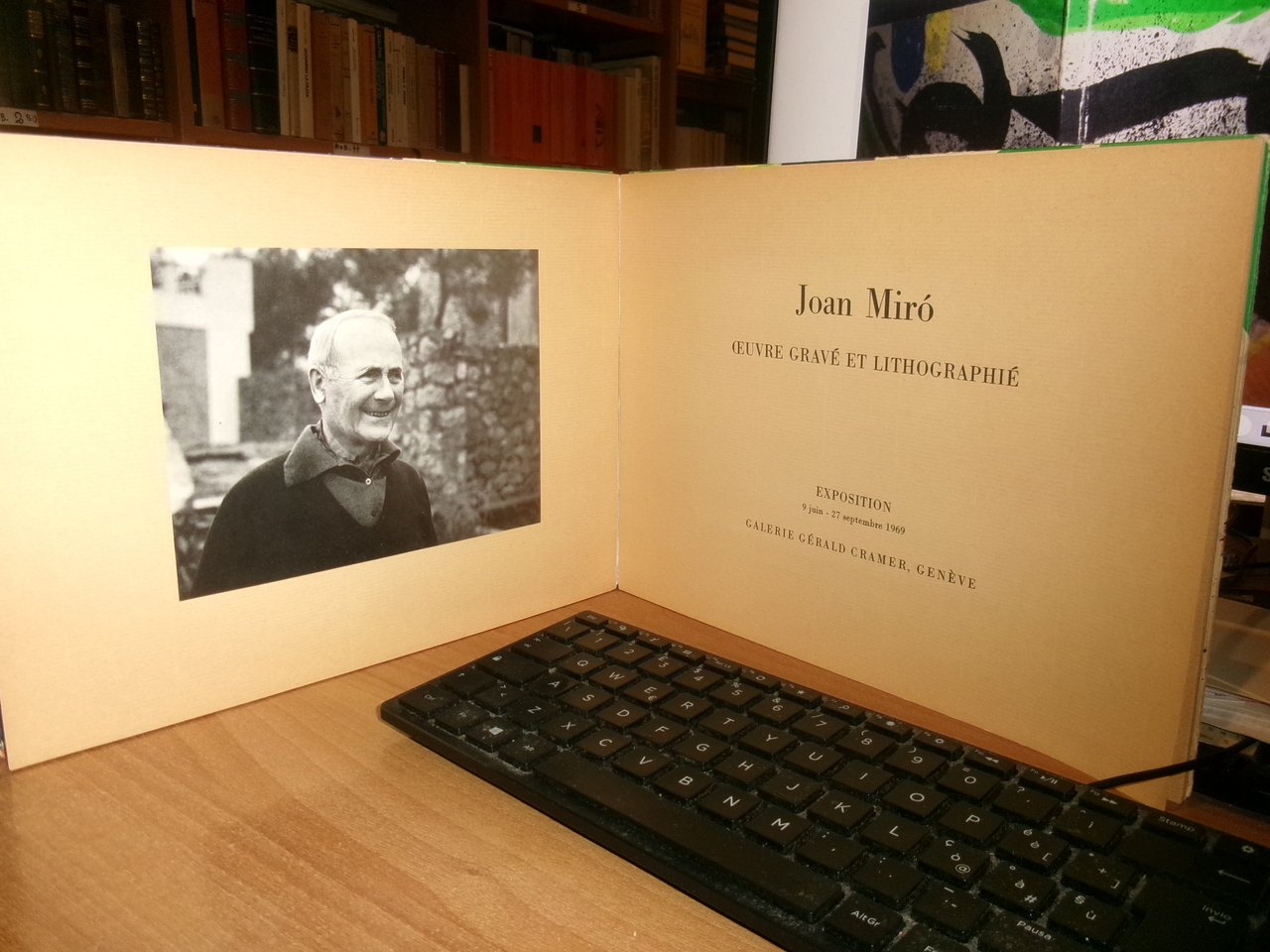Exposition, Genéve, Galerie Gérald Cramer, juin - septembre 1969. La couverture de ce catalogue est une lithographie originale spécialement dessinée par Mirò (cm 22 x 59). Avec 8 illustrations et une photo de Mirò/ Wrappers with an offset paper cover with four folded flaps printed with the lithograph on the front, back, spine and flaps.