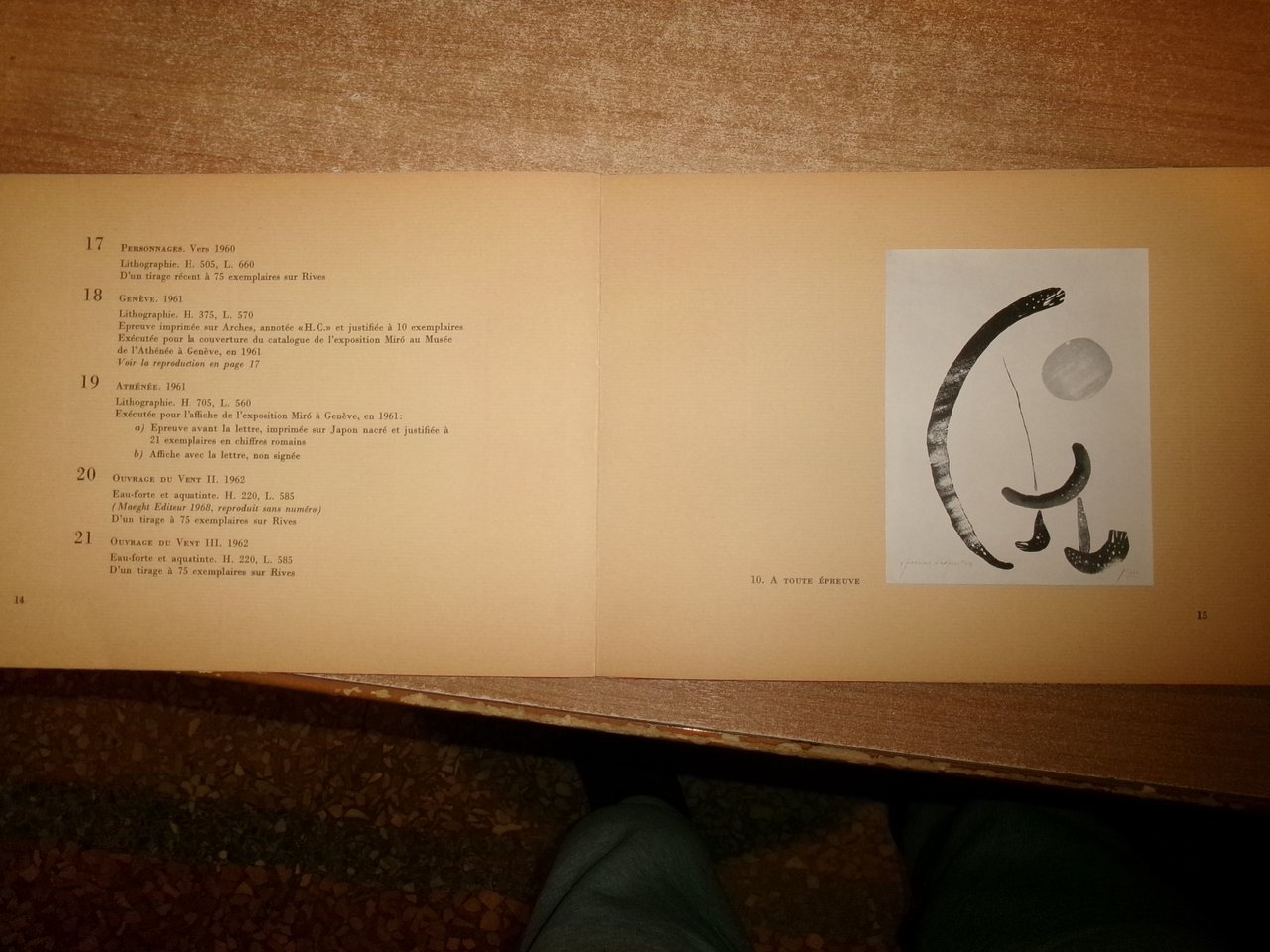 Galerie Cramer 1969 Edizione originale di 1650 es. numerati LA COUVERTURE DE CE CATALOGUE EST UNE LITOGRAPHIE ORIGINALE SPÉCIALEMENT DESSINÉE PAR JOAN MIRÒ. ELLE A ÉTÉ IMPRIMÉE SUR LES PRESSES DE L' IMPRIMERIE ARTE À PARIS. IN-8° OBLUNGO, 25 PP. CON 8 ILL. DI RIPRODUZIONI IN BIANCO E NERO INCOLLATE A PIENA PAGINA. TIRATURA DI 1650 ESEMPLARI IL NS. È IL N° 1383. OTTIMO ESEMPLARE. Neg. mens. bianca Mob. nero