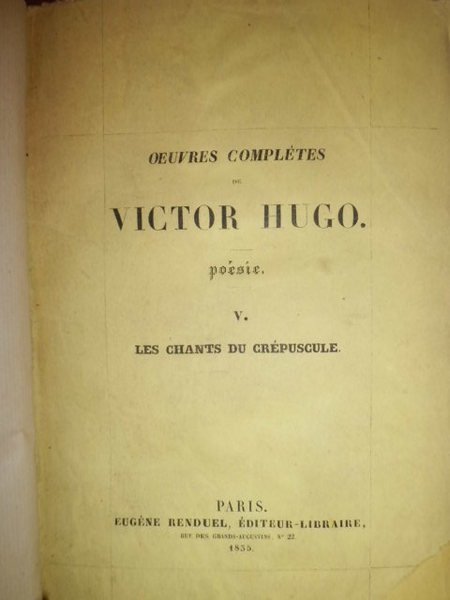 OEUVRES Complétes de Victor Hugo - Poesie V Les Chants du Crépuscule