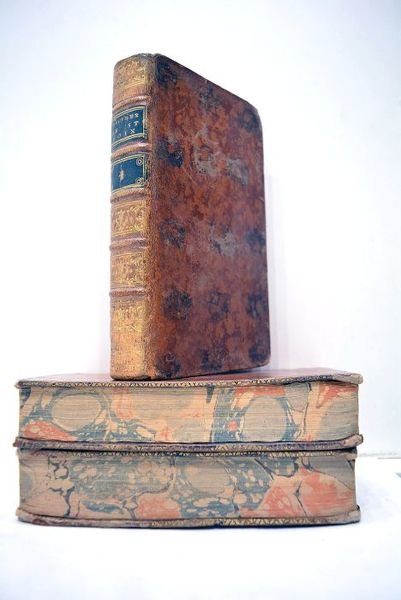 in-8. 6 tomes en 6 volumes. 1 feuillet. Portrait. 2 feuillets. 592 pages. 1 gravure hors-texte. + 1 feuillet. Frontispice. 1 feuillet. 600 pages + 2 feuillets. 479 pages. + 2 feuillets. 463 pages. + 2 feuillets. 472 pages. + 2 feuillets. 524 pages. (20x12,5cm). Plein veau ancien. Dos à nerf orné. Pièces de titre et tomaison. Tranches et gardes marbrées. Quelques frottements et épidermures aux reliures. Quelques petits accidents aux coiffes et dos. Coins un peu émoussés. Quelques rousseurs. Quelques mouillures sans gravité (plus prononées, mais sans perte, au tome 3). Très bon état intérieur. Tomes I et II: Théâtre et les Lettres turques. Tomes III, IV et V: Essais historiques sur Paris. Tome VI: Histoire de l'ordre du Saint-Esprit. Avec le portrait de l'auteur, une gravure hors-texte (tome 1) et un frontipice (tome 2). Exemplaires solides, très bon état intérieur. Poullain de Saint-Foix (1698-1776), d'esprit très querelleur, fut autant connu pour ses duels que pour ses productions littéraires ; il fut nommé en 1764 historiographe de l'ordre du Saint-Esprit.