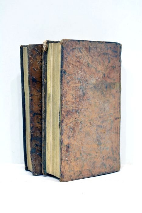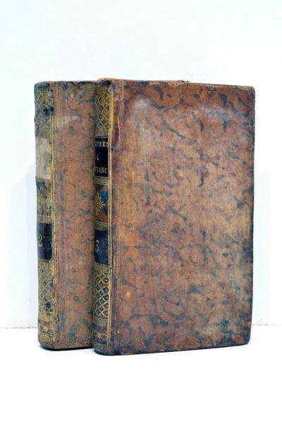 2 volumes. Tomes 2 et 3 seuls. 308 pages. 2 planches illustrée. + LXXIV. 244 pages. Ornements typographiques. (13,5x8,5cm). Pleine basane. Dos lisse richement décoré. Pièces de titre et tomaison maroquin rouge. Filet doré sur les coupes. Gardes de papier marbré. Reliure usagée et tachée. Dos frotté et taché. Accidents aux coiffes. Coupes élimées. Coins mollement épointés. Pièce de titre manquante (tome 2). Plat inférieur déformé (tome 3). Quelques rousseurs à l'intérieur. Traces de mouillure importantes (tome 3). Défauts d'usage. 2 volumes parés d'uns reliure uniforme qui mérite une restauration.
