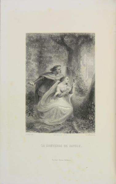 Paris, Garnier frères, s.d. (1864). Grand In/8 reliure demi-chagrin vert, dos à nerfs à titre doré, doré sur trois tranches, illustrations : 3 gravures sur acier d’après les dessins de Staal, 540 pages. Rousseurs. Petites usures en coiffes. La Comtesse de Savoie - Aménophis - Mémoires du Comte de Comminges - Le siège de Calais - Les malheurs de l'amour - Anecdotes de la cour et du règne d'Edouard II.