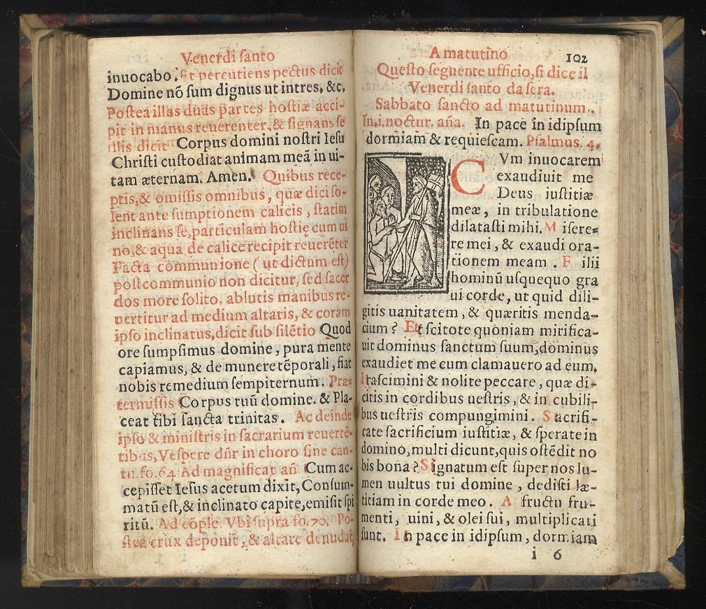 Venetiis, apud Franciscum Rampazetum, 1563, in-12 piccolo, legatura ottocentesca in mezza pelle, titolo e filetti in oro al dorso, carte 155. Interamente impresso in rosso e nero, con marca tipografica e piccola vignetta in xilografia sul frontespizio e una xilografia a piena pagina al verso dello stesso; iniziali xilografiche figurate. Esemplare ampiamente scompleto: mancano 23 carte: a2, a3, a4, a5, a6, a7, a8, a9, a10, a11, e2, e3, e4, e5, e6, e7, e8, e9, e10, e11, m12, n1, e n12. Macchie alle prime ed ultime carte. Manca l'angolo inferiore esterno del frontespizio. Nonostante sia ampiamente difettoso il volume è senza dubbio interessante: si tratta d'una edizione non presente in Edit16 né in ICCU, sebbene simile a quella del Rampazetto del 1568, censita in un solo esemplare mutilo del frontespizio (IT\ICCU\CNCE\011736, alla Biblioteca Civica Glemonense don Valentino Baldissera di Gemona del Friuli).