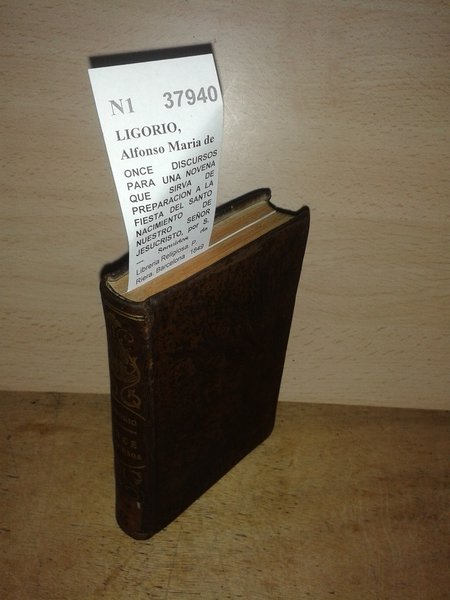 LIGORIO, Alfonso Maria de ONCE DISCURSOS PARA UNA NOVENA QUE SIRVA DE PREPARACION A LA FIESTA DEL SANTO NACIMIENTO DE NUESTRO SEÑOR JESUCRISTO, por S. ---. Seguidos de VEINTE Y UNA MEDITACIONES DEL V.P. LUIS DE LA PUENTE PARA LAS FIESTAS DE NAVIDAD, y de una preparacion espiritual para el sacratisimo parto de Maria Santisima. Libreria Religiosa. P. Riera. Barcelona 1849 359 p. (15 cm) Enc. plena piel pasta española. Guardas al agua. N1 (Ref.37940) teologia religion espiritualidad navidad devocion novena