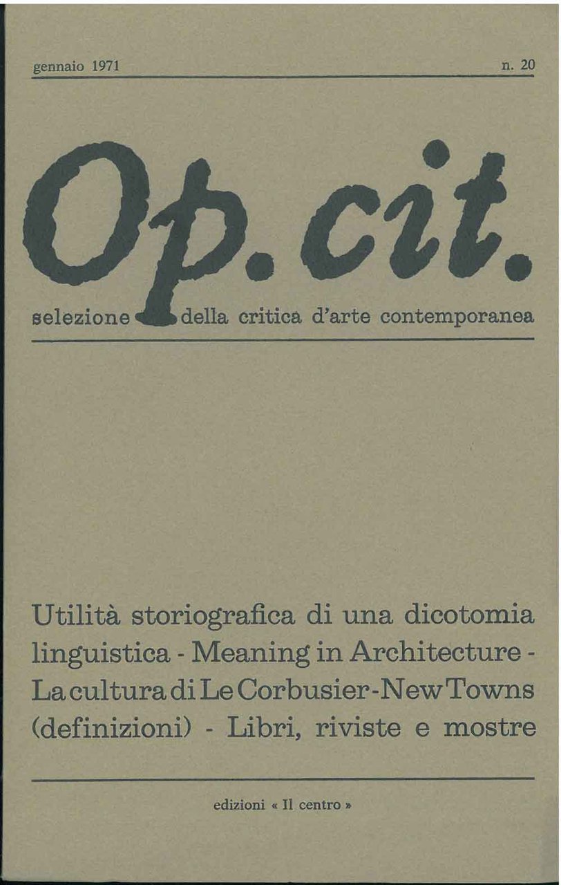 Op. cit. Rivista quadrimestrale di selezione della critica d'arte contemporanea. Gennaio 1971, n. 20