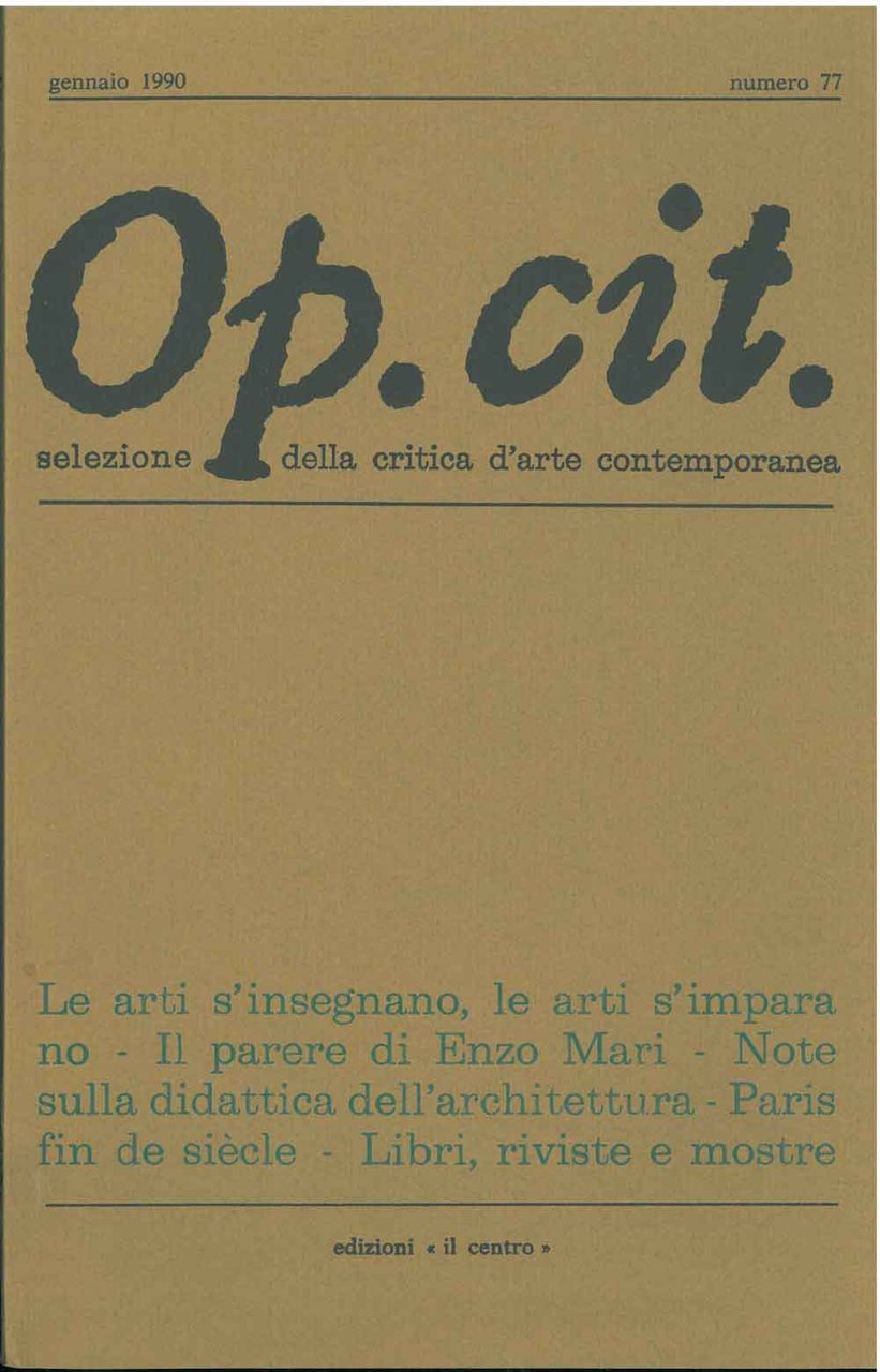 Op. cit. Rivista quadrimestrale di selezione della critica d'arte contemporanea. Gennaio 1990, n. 77