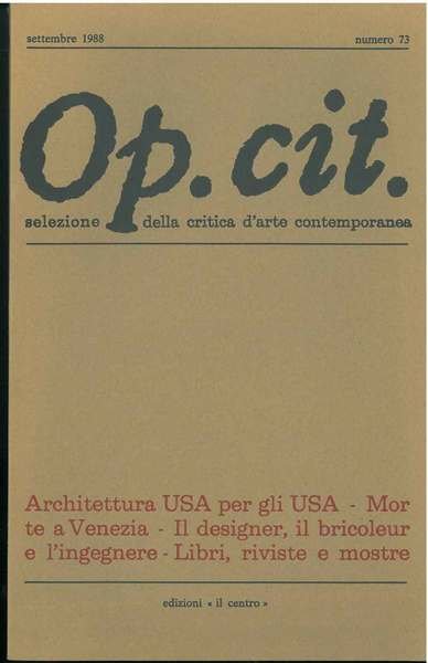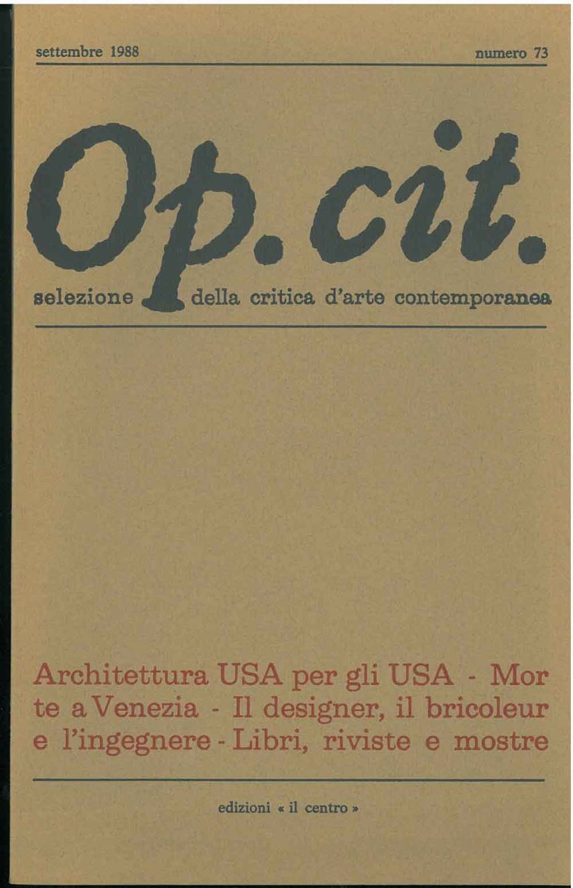 Op. cit. Rivista quadrimestrale di selezione della critica d'arte contemporanea. Settembre 1989, n. 73