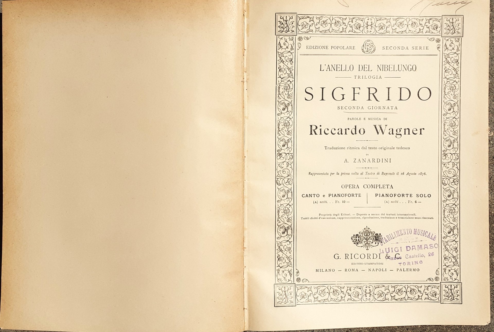 Opera completa Riccardo Wagner L'anello del Nibelungo triloga Sigfrido Ricordi inizi '900