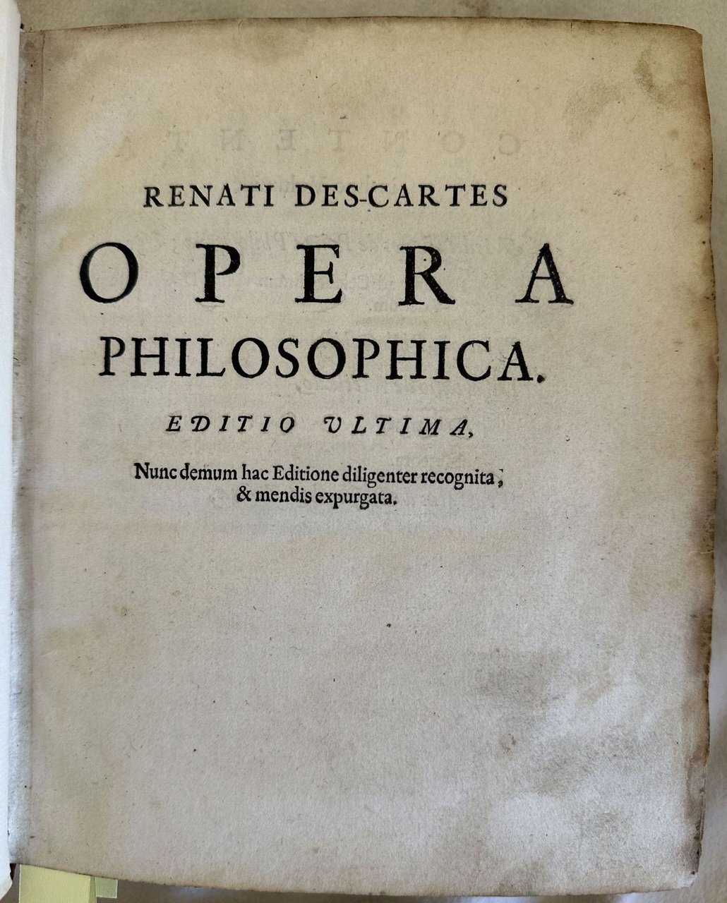 OPERA PHILOSOPHICA EDITIO ULTIMA NUNC DEMUM HAC EDITIONE DILIGENTER RECOGNITA, & MENDIS EXPURGATA.