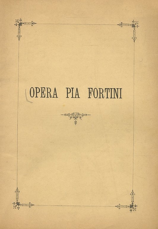 OPERA Pia Fortini. Statuto organico. Approvato con decreto Reale del dì 25 aprile 1886.