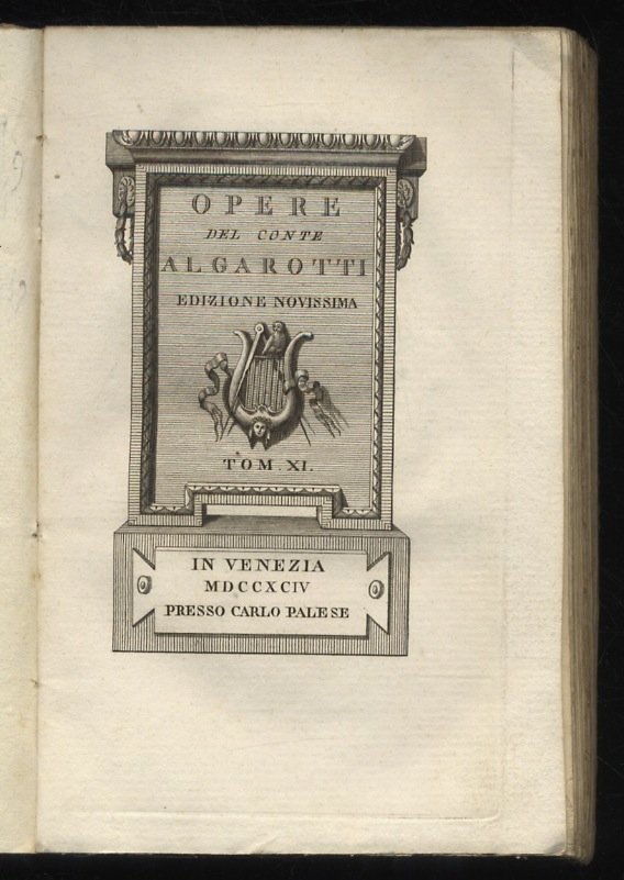 Opere del conte Francesco Algarotti. Edizione novissima. Tom. XI. Tom. XIII. [Carteggio inedito del conte Algarotti, parte prima, terza, delle lettere italiane].