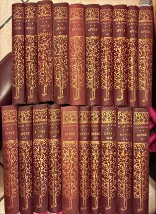 Venti Voll. In 16° (cm 19,2 x 13), pp. 446 + 509 + 493 + 488 + 548 + 414 + 419 + 449 + 426 + 421 + 415 + 526 + 421 + 537 + 452 + 355 + 449 + 415 + 474. Leg. piena tela, tit. oro al dorso decorato in oro. Lievi segni di consunzione ai margini e alle cuffie. Lievi fioriture ai tagli. Taglio sup. rosso scuro. Rare macchiette brunite. Lievi tracce di polvere. Buone condizioni.