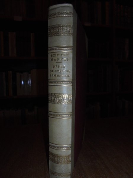 Scipione, Maffei. Bari, Gius. Laterza & Figli, 1928. Opere drammatiche e poesie varie a cura di Antonio Avena. In - 8°, m. pergamena con angoli, dorso a nervi, fregi e titolo in oro, taglio superiore dorato. 407 pp. Bell' esemplare. Neg. mob. nero.