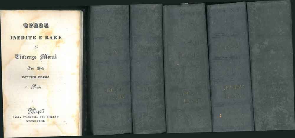Opere varie del cavaliere Vincenzo Monti. Contiene le prose, le poesie, e i dialoghi