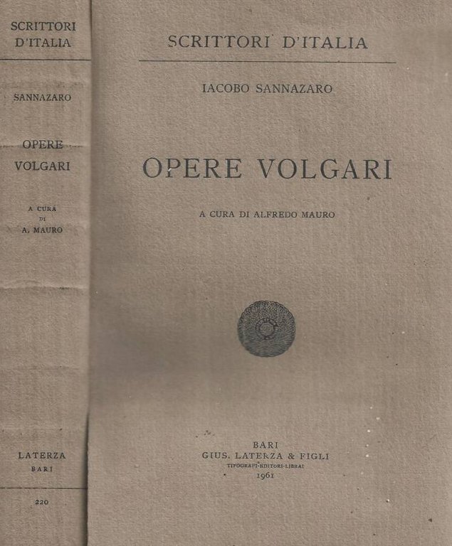 A cura di Alfredo Mauro, vol. n. 220 della collana 'Scrittori d'Italia'. Brossura anni '60, rilegata filo refe, pagine interne ancora intonse, tonalità ossidate ocra, tagli irregolari. Copertina di carta vergata con strappetti lungo i bordi, segno di becca in quarta. N. pag. 525.