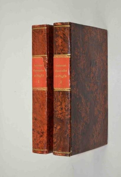 Due volumi di cm. 20, pp. (8) cxxiv, 255 (3); (2) 405 (3). Con 6 tavole incise in rame e ripiegate f.t. Legatura ottocentesca in cartonato rigido marmorizzato con titoli in oro su tasselli ai dorsi. Esemplare genuino ed in buono stato di conservazione. Ex libris privato. Prima traduzione francese di questa celebre opera del naturalista reggiano. Cfr. Blake, 427 e Osler, 1219.