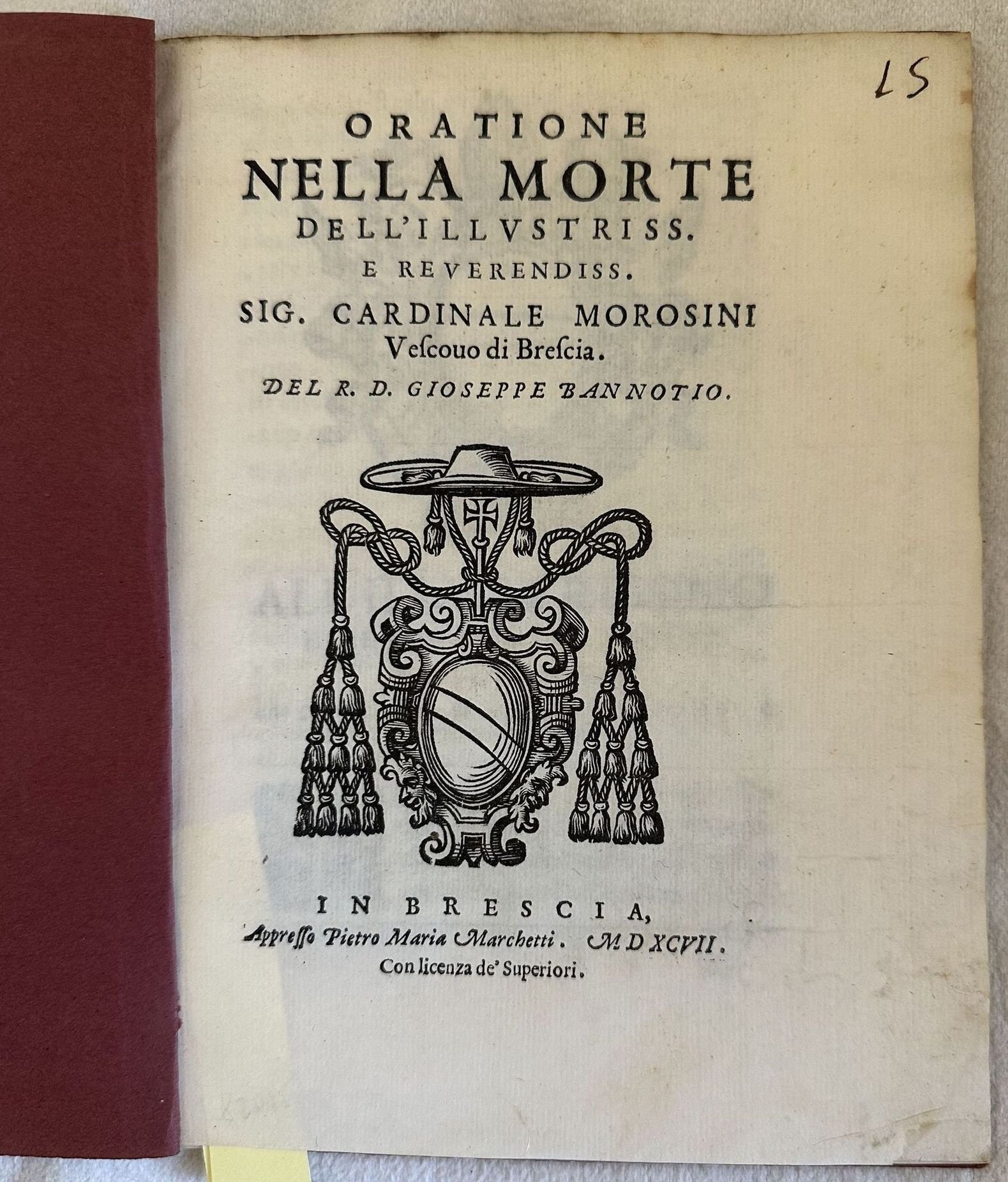 ORATIONE NELLA MORTE DELL'ILLUSTRISS. E REVERENDISS. SIG. CARDINALE MOROSINI VESCOVO DI BRESCIA