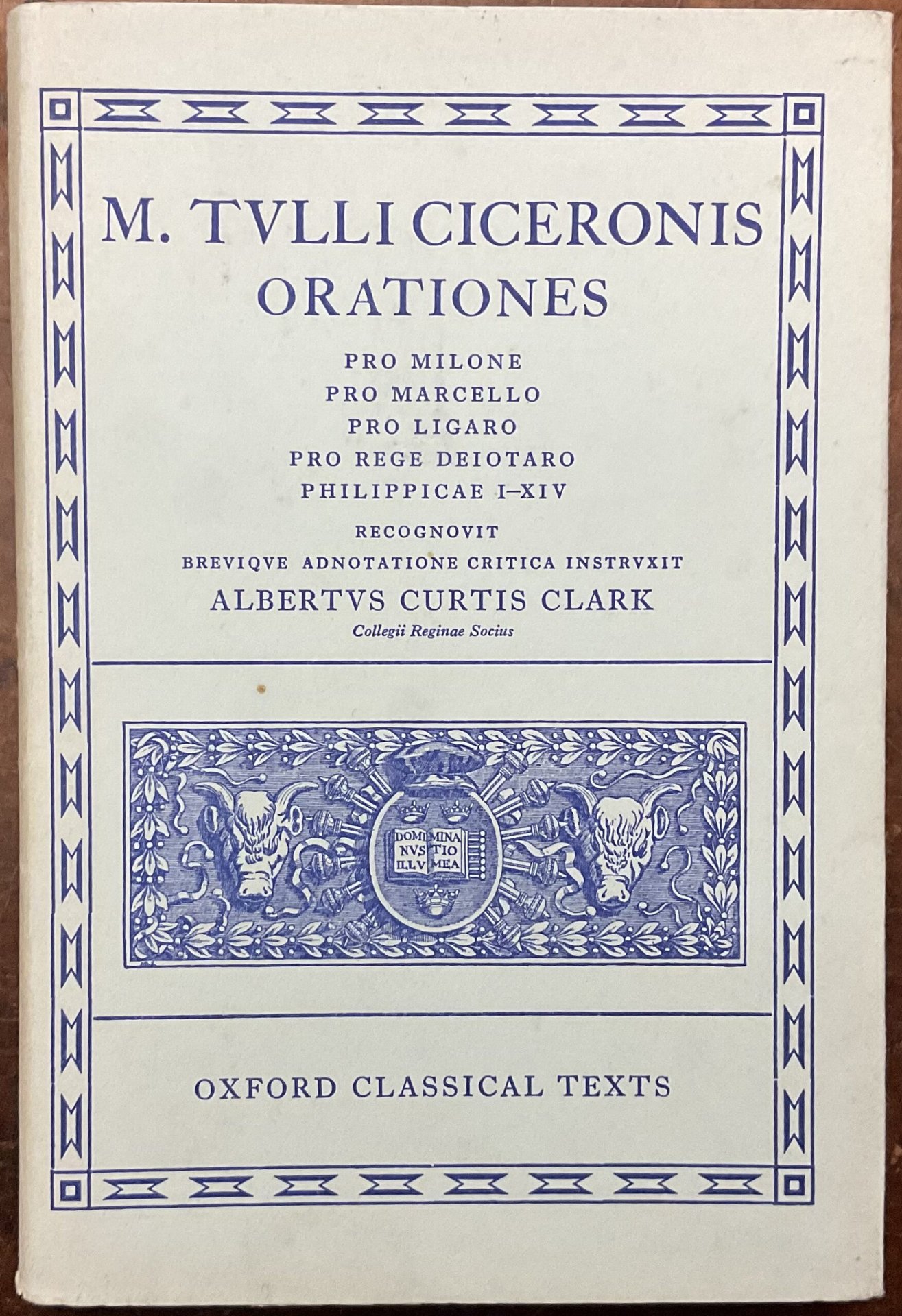 Orationes. Pro Milone, Pro Marcello, Pro Ligaro, Pro Rege Deiotaro, Philippicae I-XIV. Recognovit brevique adnotatione critica instruxit Albertus Curtis Clark
