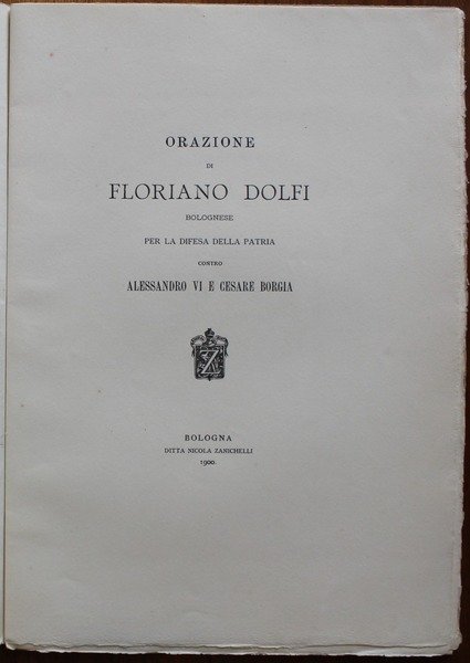Orazione per la difesa della patria contro Alessandro VI e Cesare Borgia. Per nozze del conte Gastone di Mirafiori e la signorina Margherita Boasso