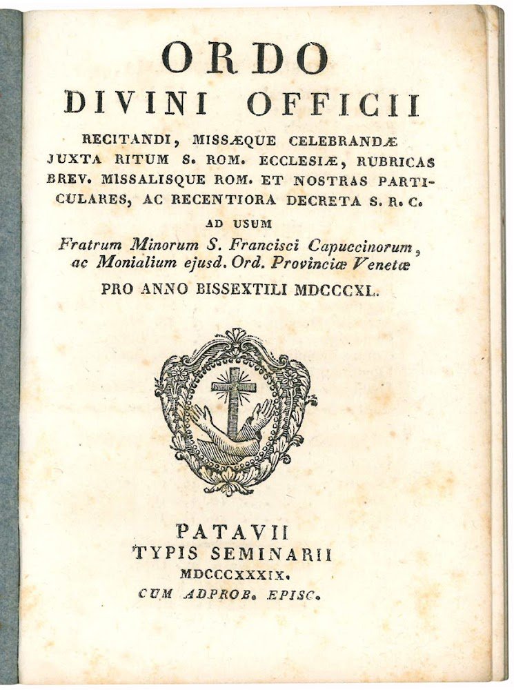 Ordo Divini Officii recitandi, Missaeque Celebrandae Juxta Ritum S. Rom. Ecclesiae, rubricas Brev. Missalique Rom. et nostras particulares, ac reccentiora decreta S. R. C. ... Pro Anno Bissextili MMDCCCXL.