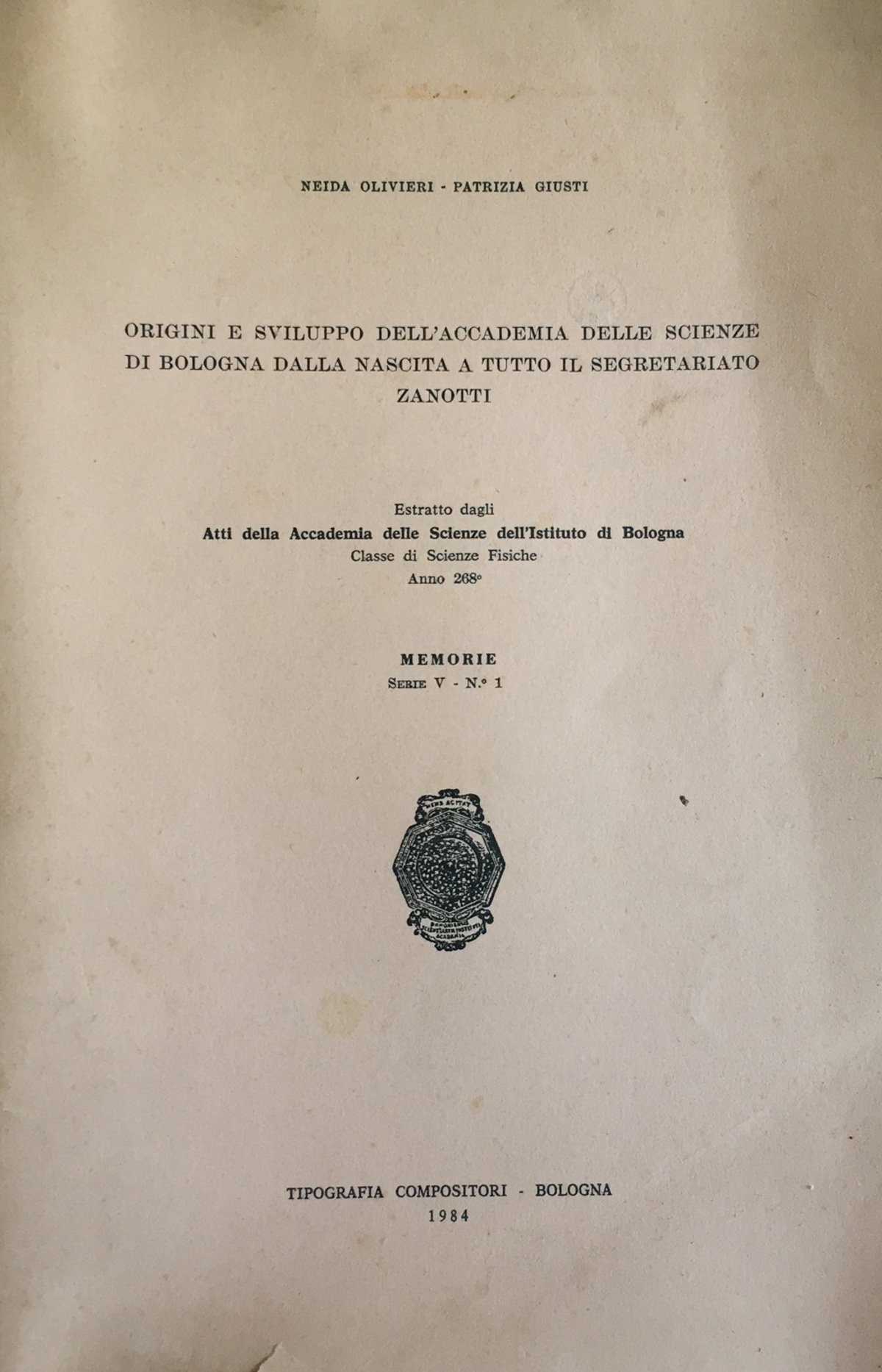 Origini e sviluppo dell'Accademia delle scienze di Bologna dalla nascita a tutto il segretariato Zanotti | Libri antichi e moderni | Olivieri, Neida - Giusti, Patrizia